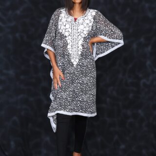 Chiffon Georgette Pure Hand Embroidery Kaftan (black- Short)