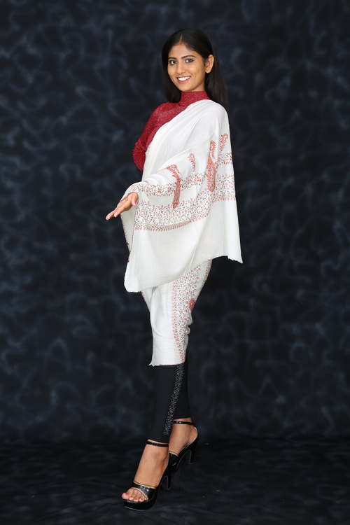 Kashmiri Semi Pashmina Palla Hand Embroidery Stall