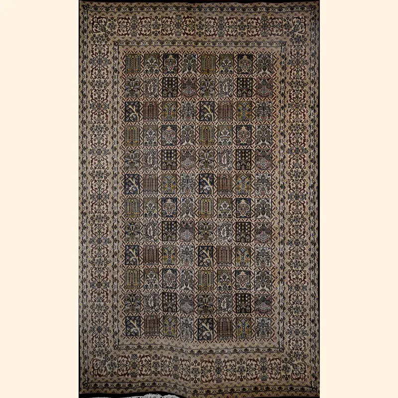 A Kashmir rug, originating from the Kashmir Valley in India, is a finely hand-knotted oriental rug celebrated for its association with Kashmiri craftsmanship. These rugs feature intricate oriental and floral designs, varying in colours, sizes, and quality.